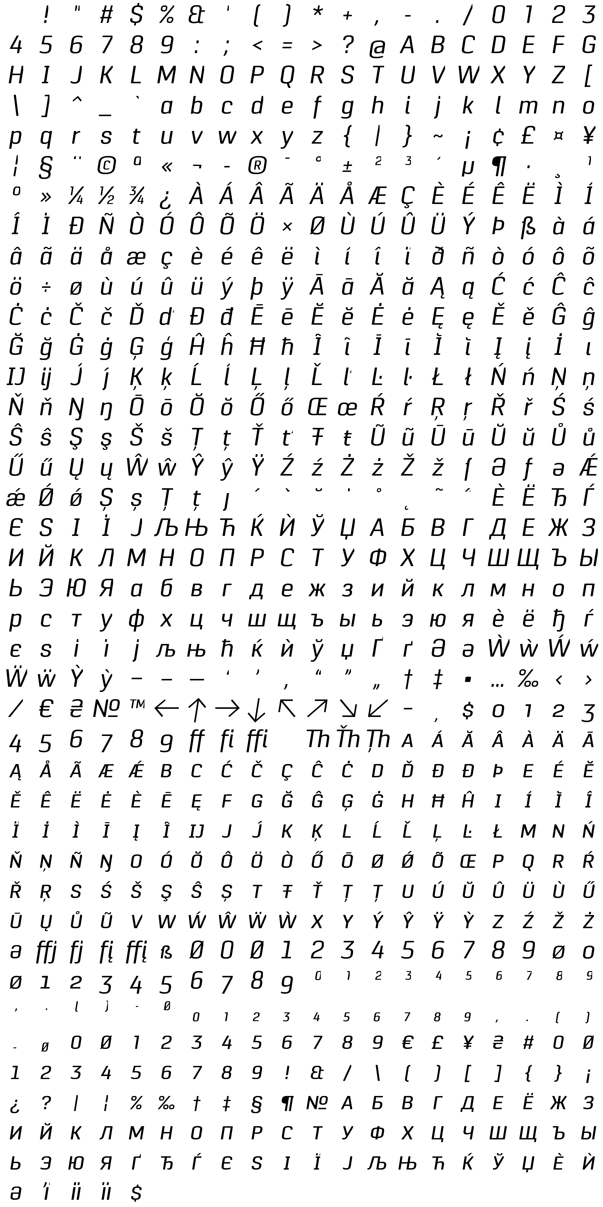 Due to the nature of thumbs' generation process, some of the glyphs in the glyph map may appear cropped.