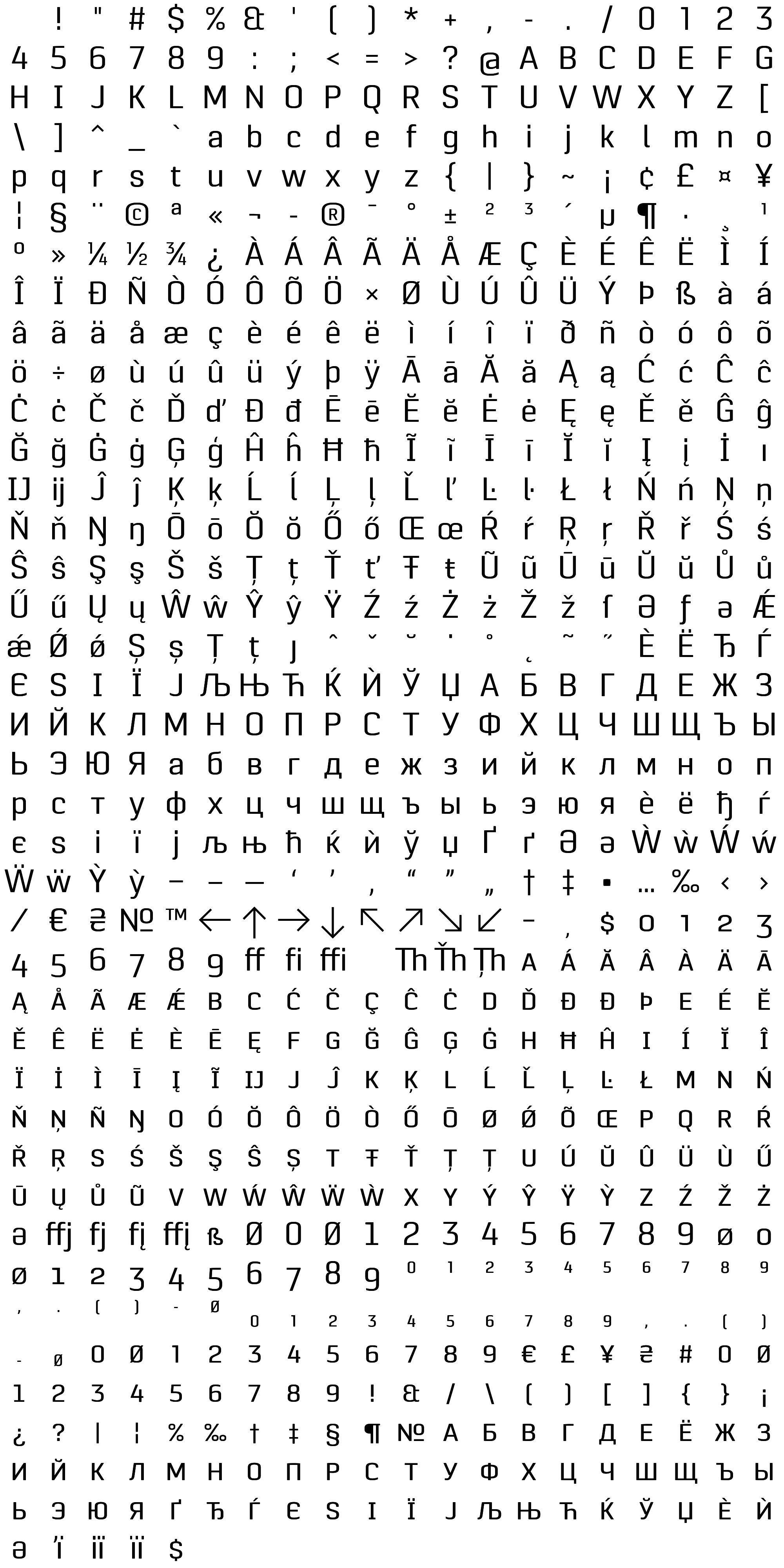 Due to the nature of thumbs' generation process, some of the glyphs in the glyph map may appear cropped.