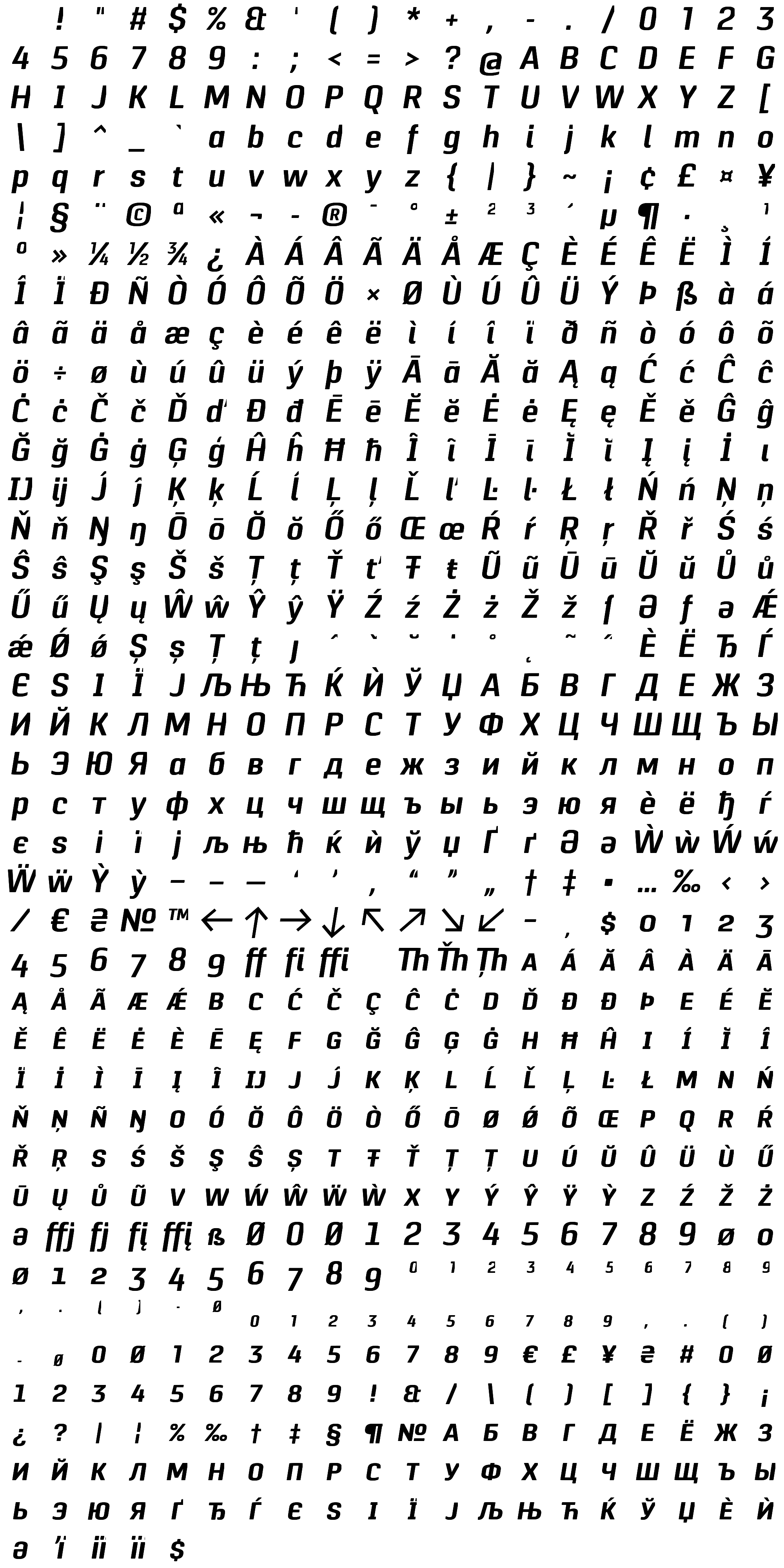 Due to the nature of thumbs' generation process, some of the glyphs in the glyph map may appear cropped.