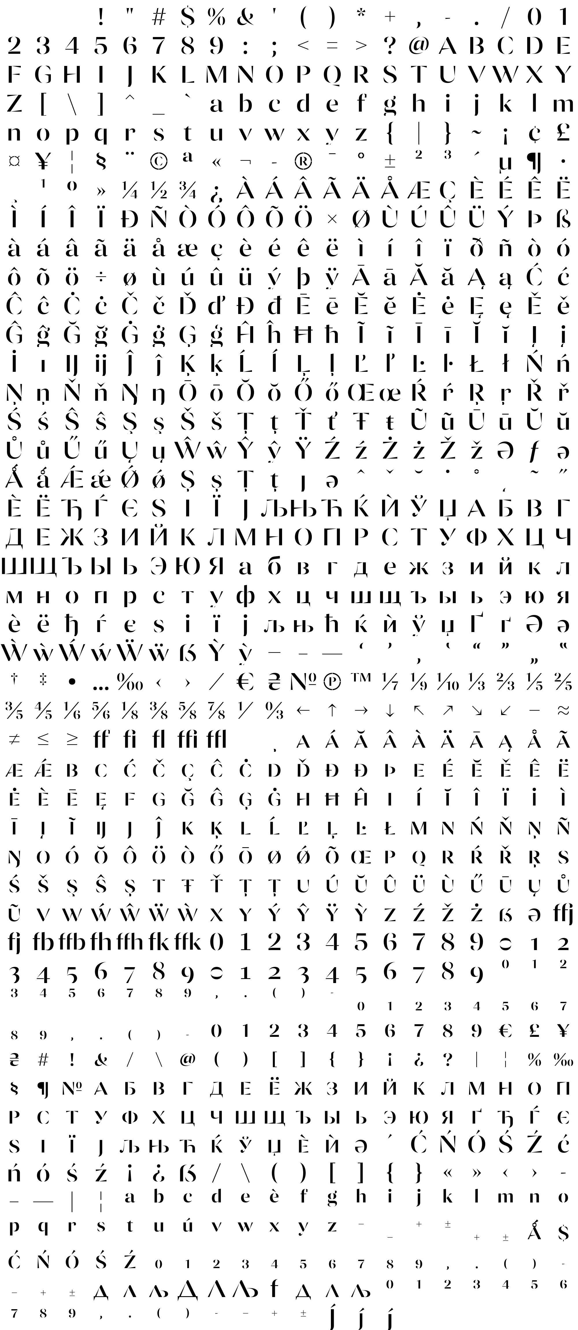 Due to the nature of thumbs' generation process, some of the glyphs in the glyph map may appear cropped.