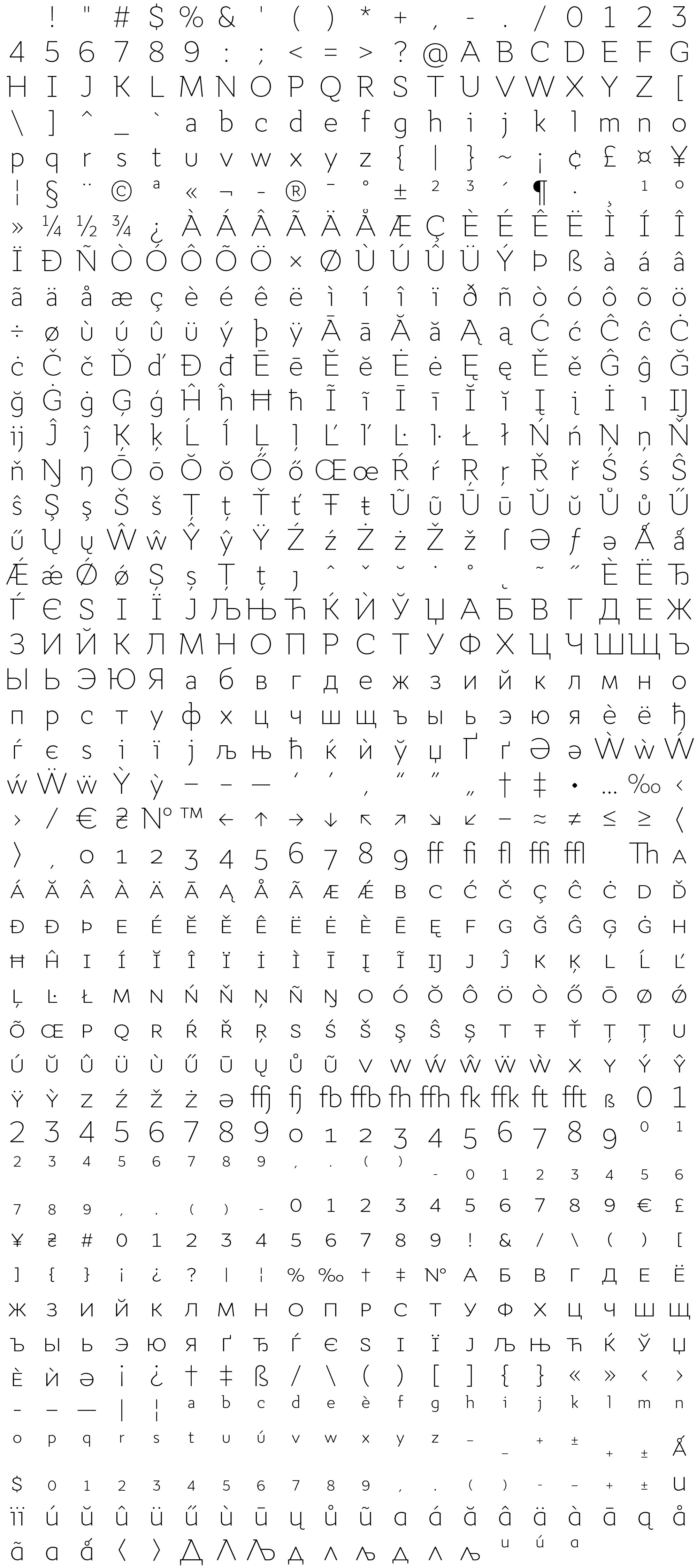 Due to the nature of thumbs' generation process, some of the glyphs in the glyph map may appear cropped.
