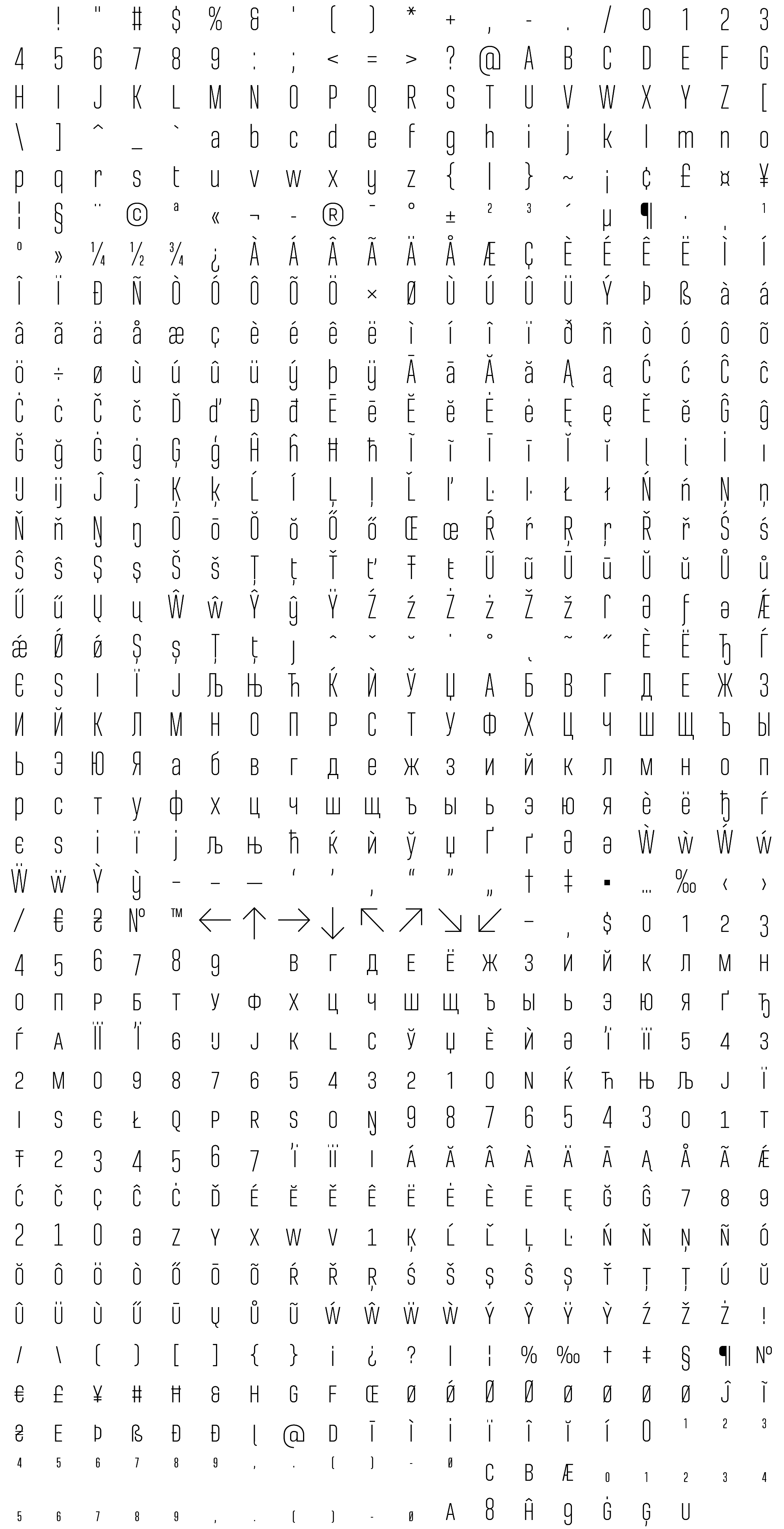 Due to the nature of thumbs' generation process, some of the glyphs in the glyph map may appear cropped.