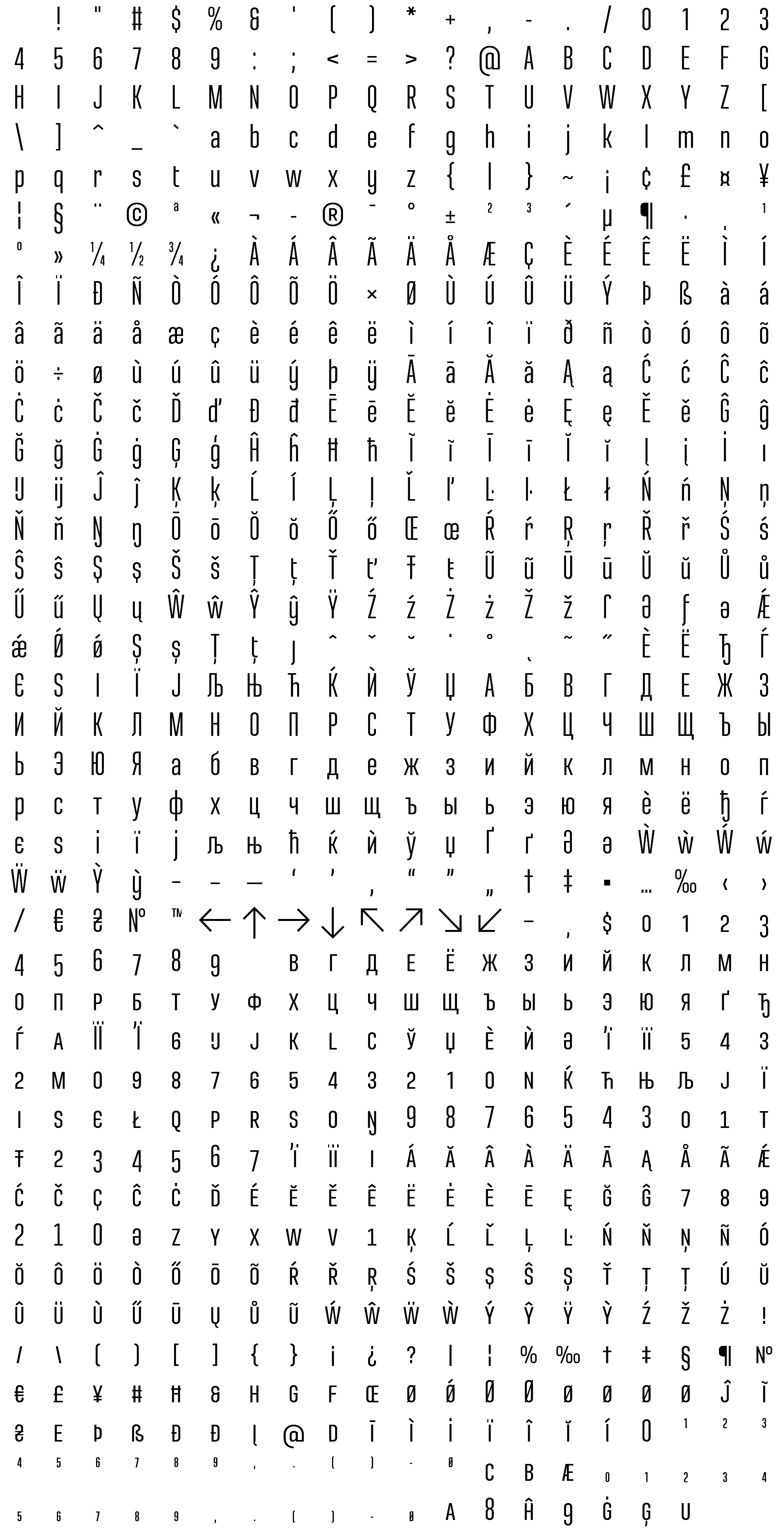 Due to the nature of thumbs' generation process, some of the glyphs in the glyph map may appear cropped.