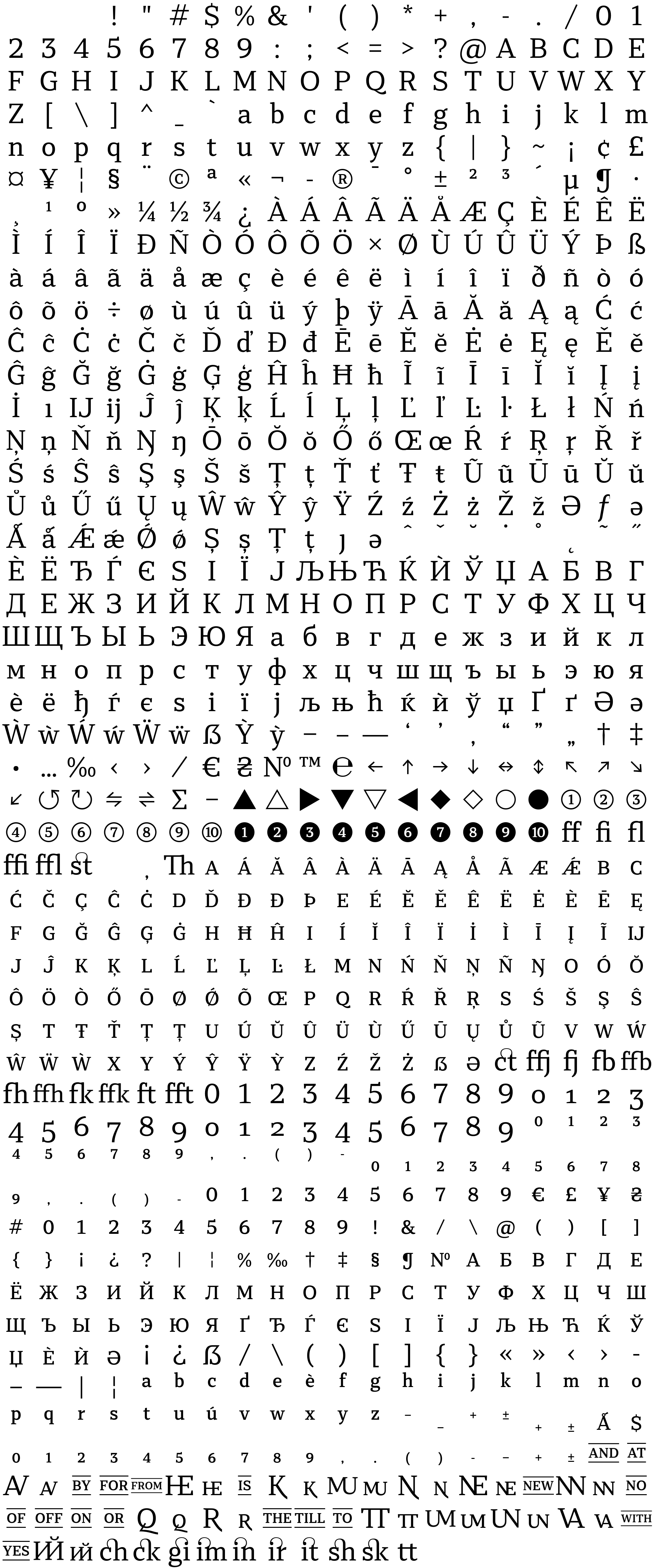 Due to the nature of thumbs' generation process, some of the glyphs in the glyph map may appear cropped.