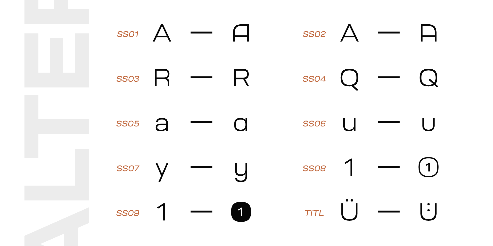Ruberoid is a squarish geometric sans-serif family reminiscent of Italian designs of 1950s and 1960s, but featuring considerably rounder shapes to give it a more contemporary feel.