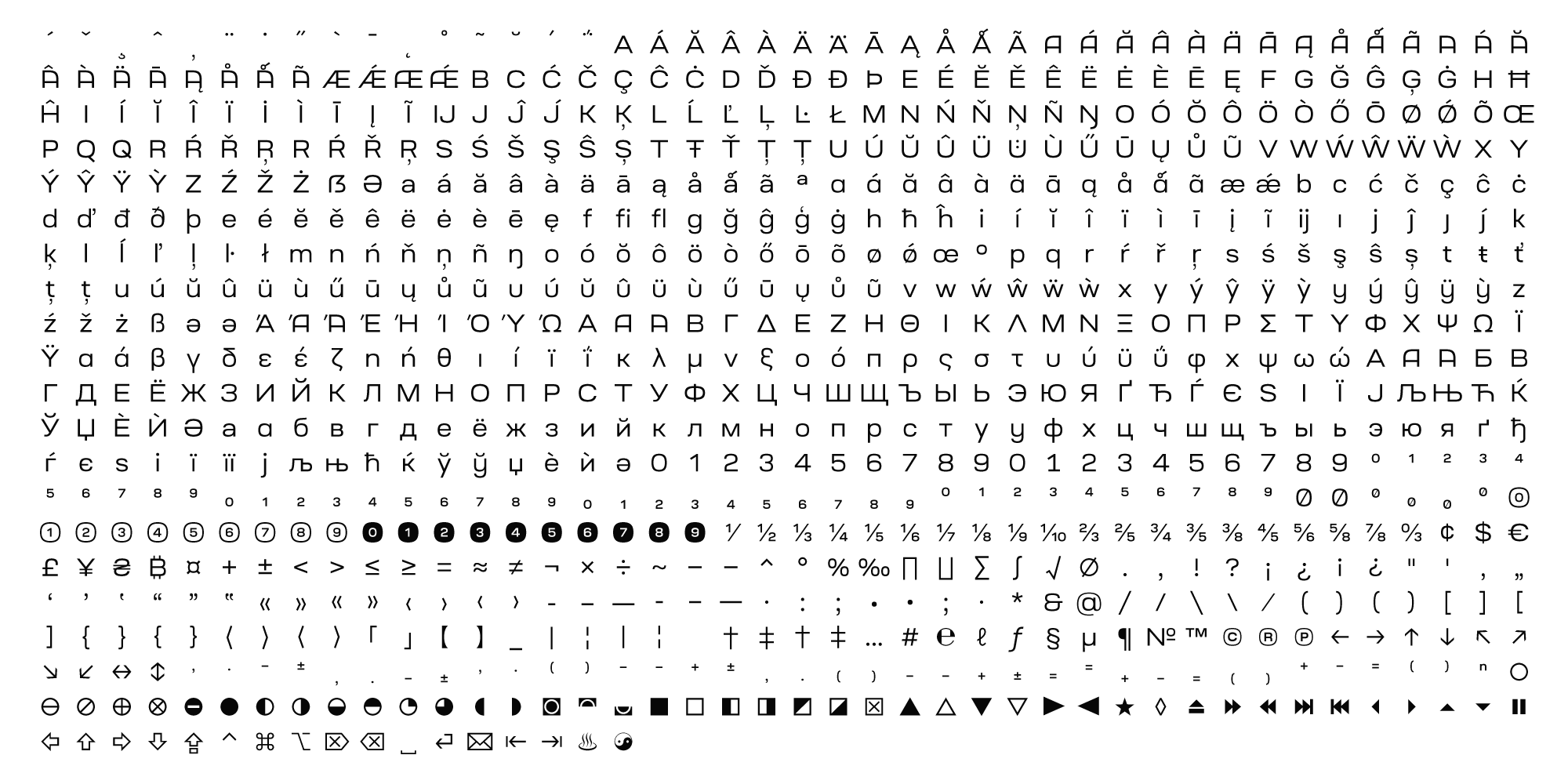 The typeface comes in 9 weights with companion oblique styles and contains support for Latin, Greek, and Cyrillic scripts.