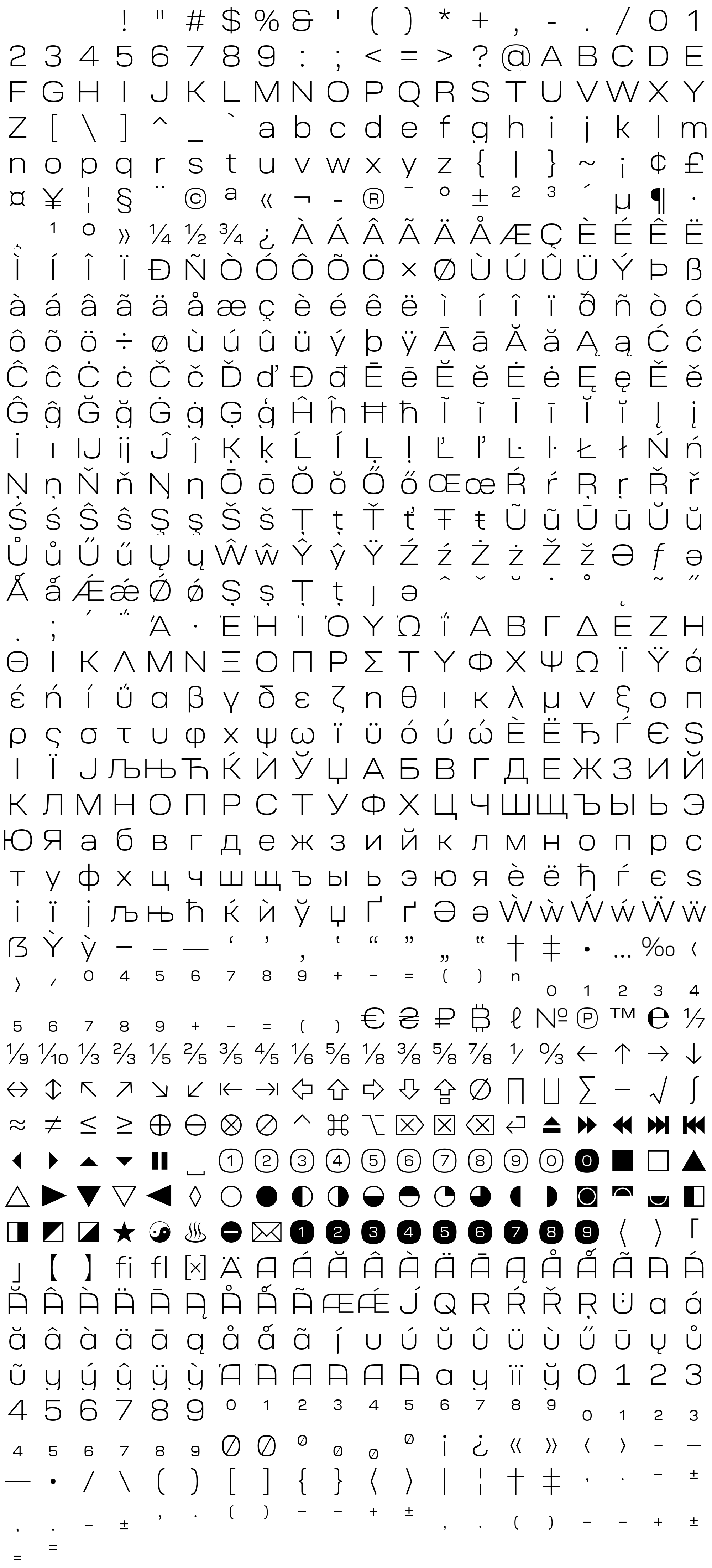 Due to the nature of thumbs' generation process, some of the glyphs in the glyph map may appear cropped.