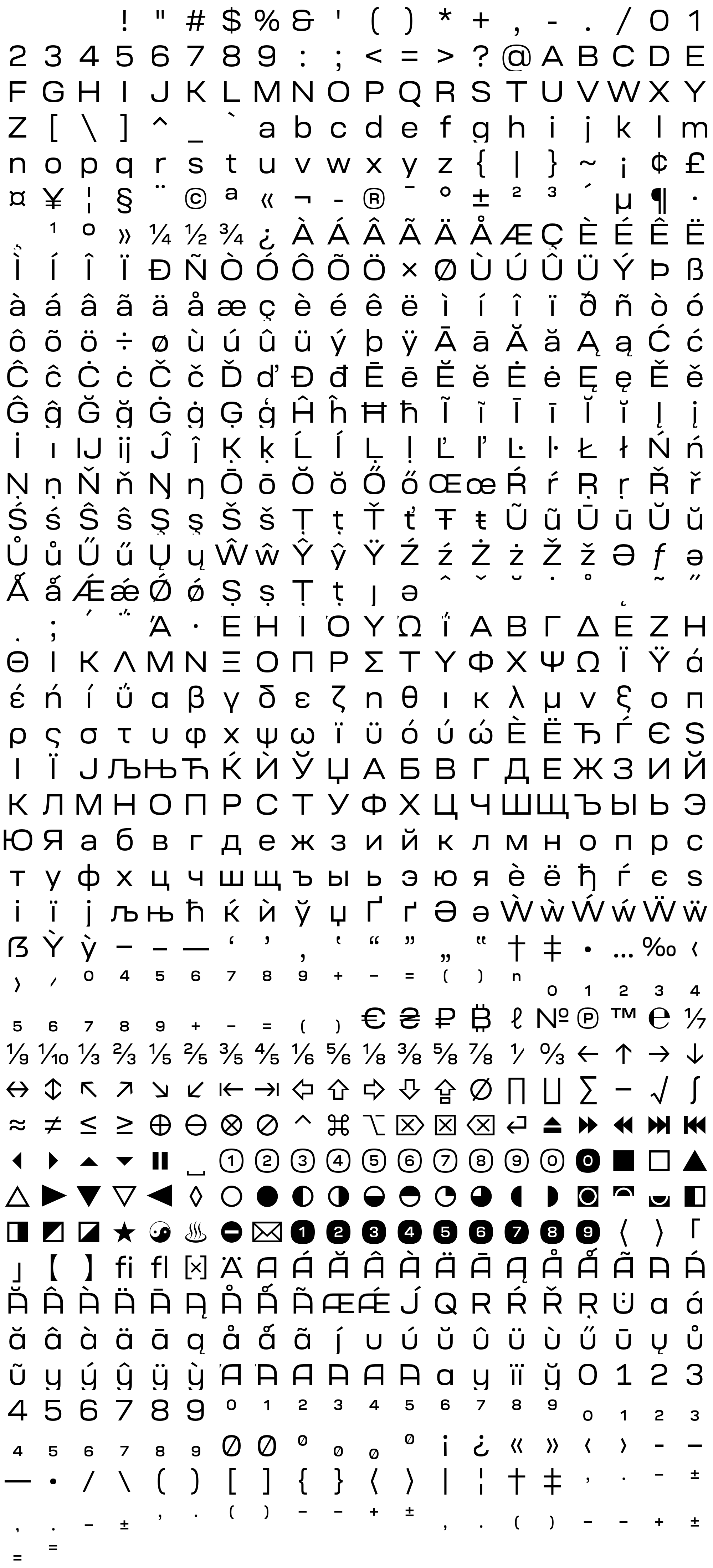 Due to the nature of thumbs' generation process, some of the glyphs in the glyph map may appear cropped.
