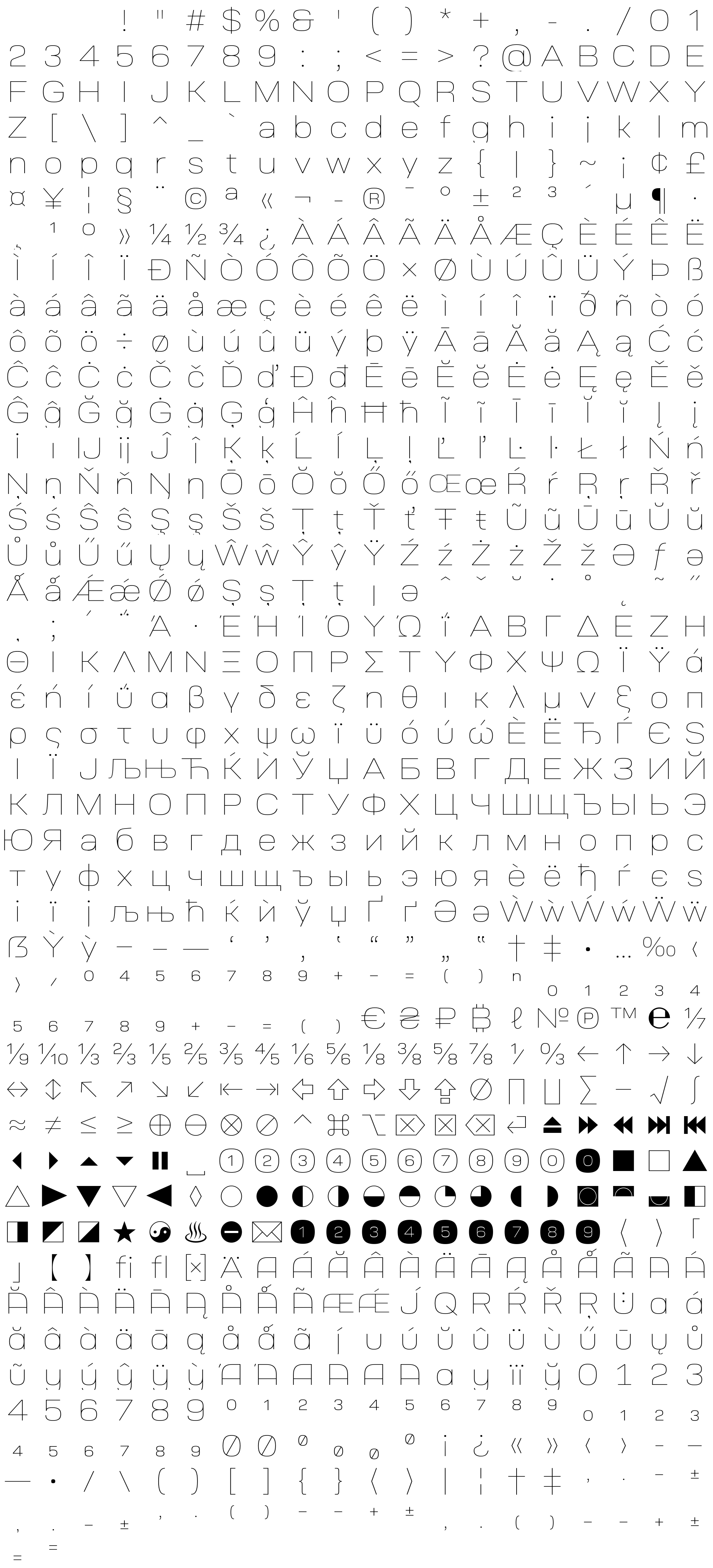 Due to the nature of thumbs' generation process, some of the glyphs in the glyph map may appear cropped.