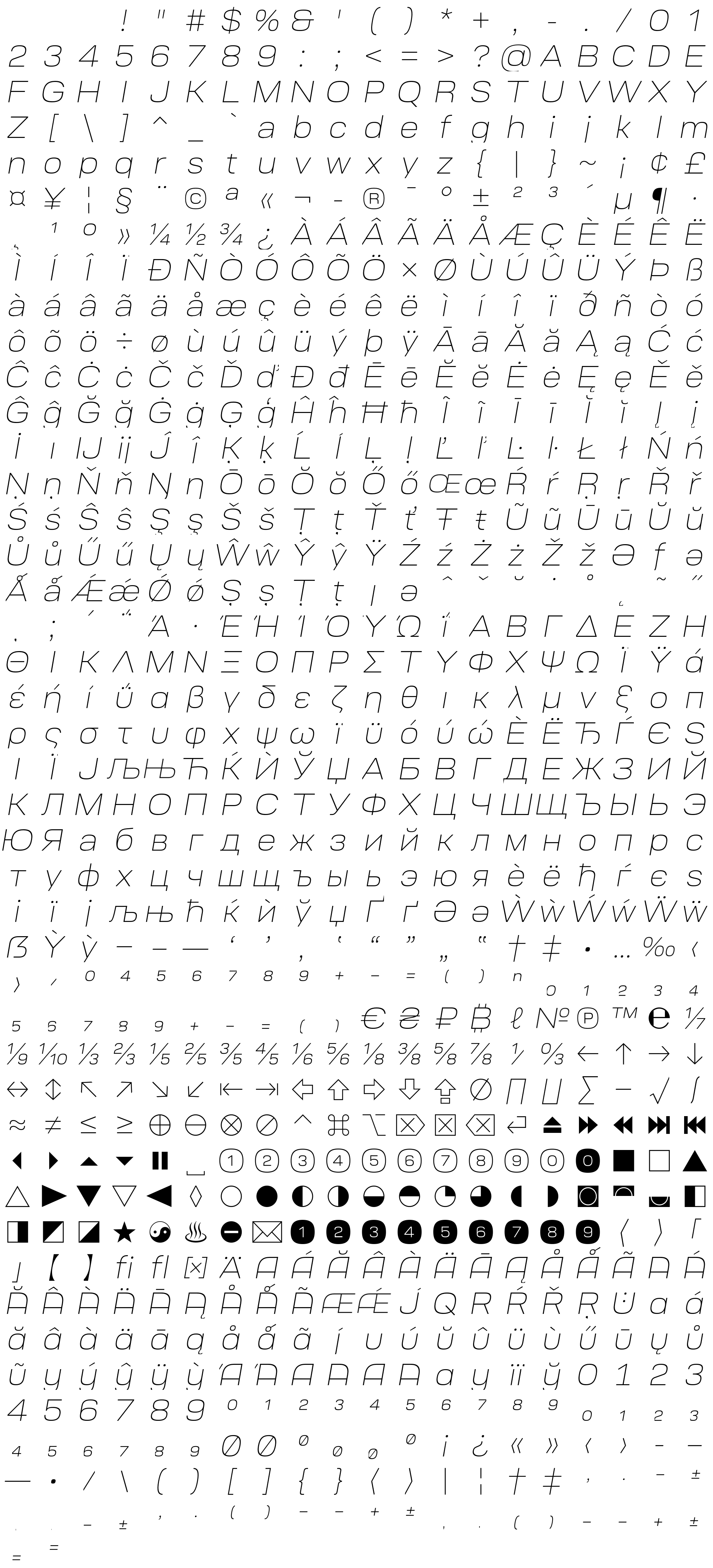 Due to the nature of thumbs' generation process, some of the glyphs in the glyph map may appear cropped.