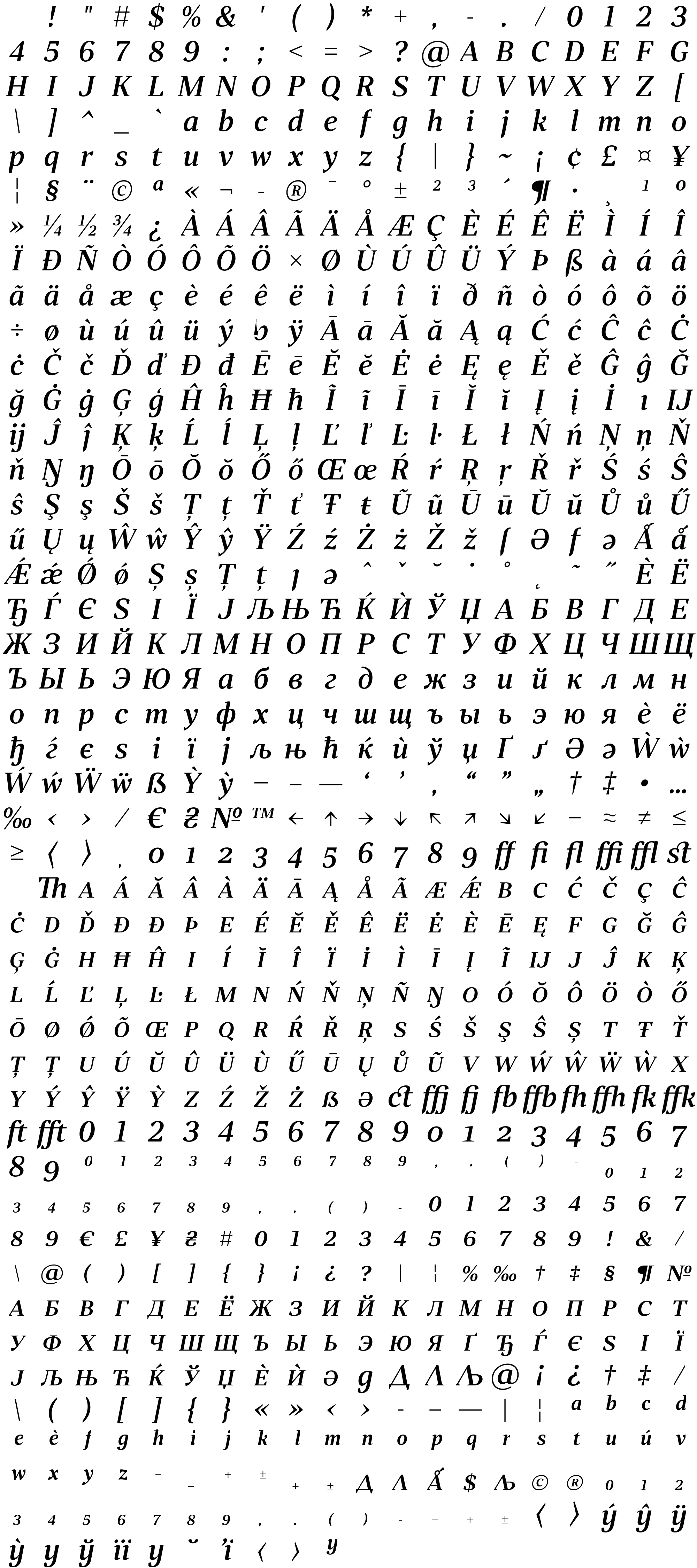 Due to the nature of thumbs' generation process, some of the glyphs in the glyph map may appear cropped.