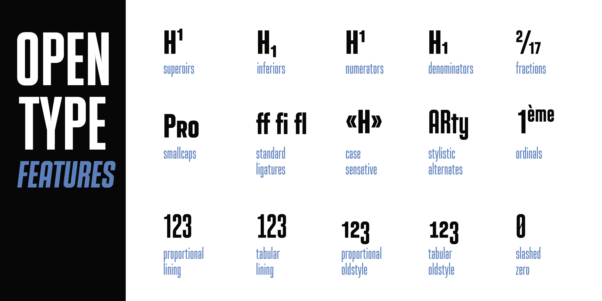 Spaceland is a perfect choice for designs that require extra narrow but legible letters, such as movie posters, health warnings, bold titles etc. It has rich language support, including Cyrillic, as well as numerous OpenType features to customize your design.