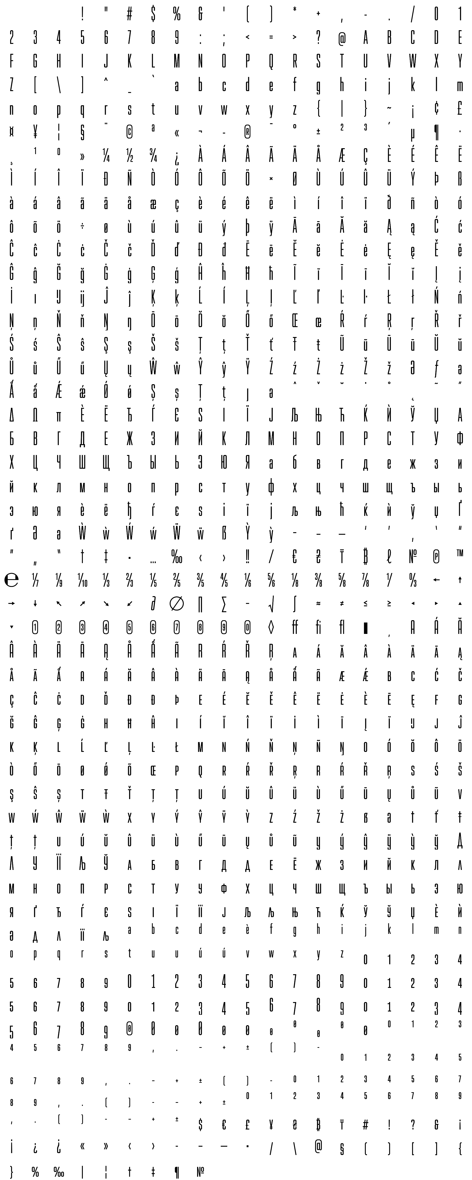 Due to the nature of thumbs' generation process, some of the glyphs in the glyph map may appear cropped.