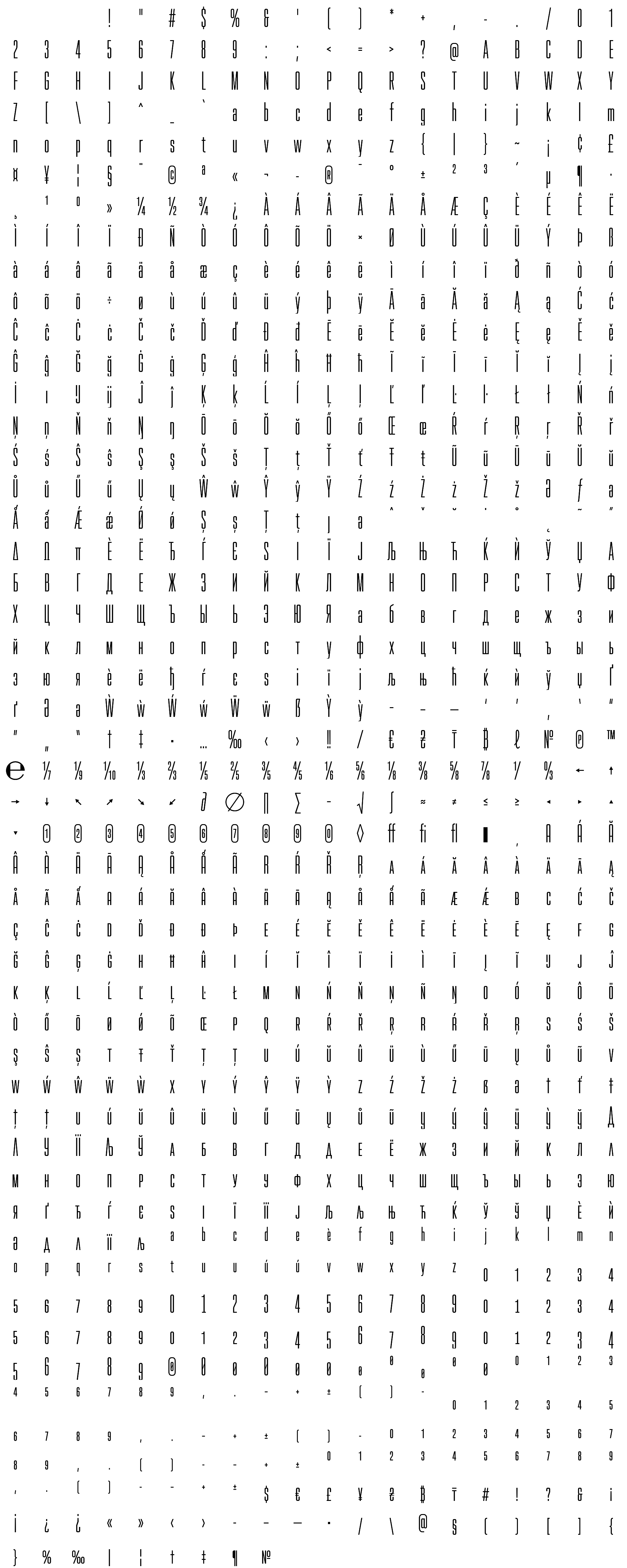 Due to the nature of thumbs' generation process, some of the glyphs in the glyph map may appear cropped.