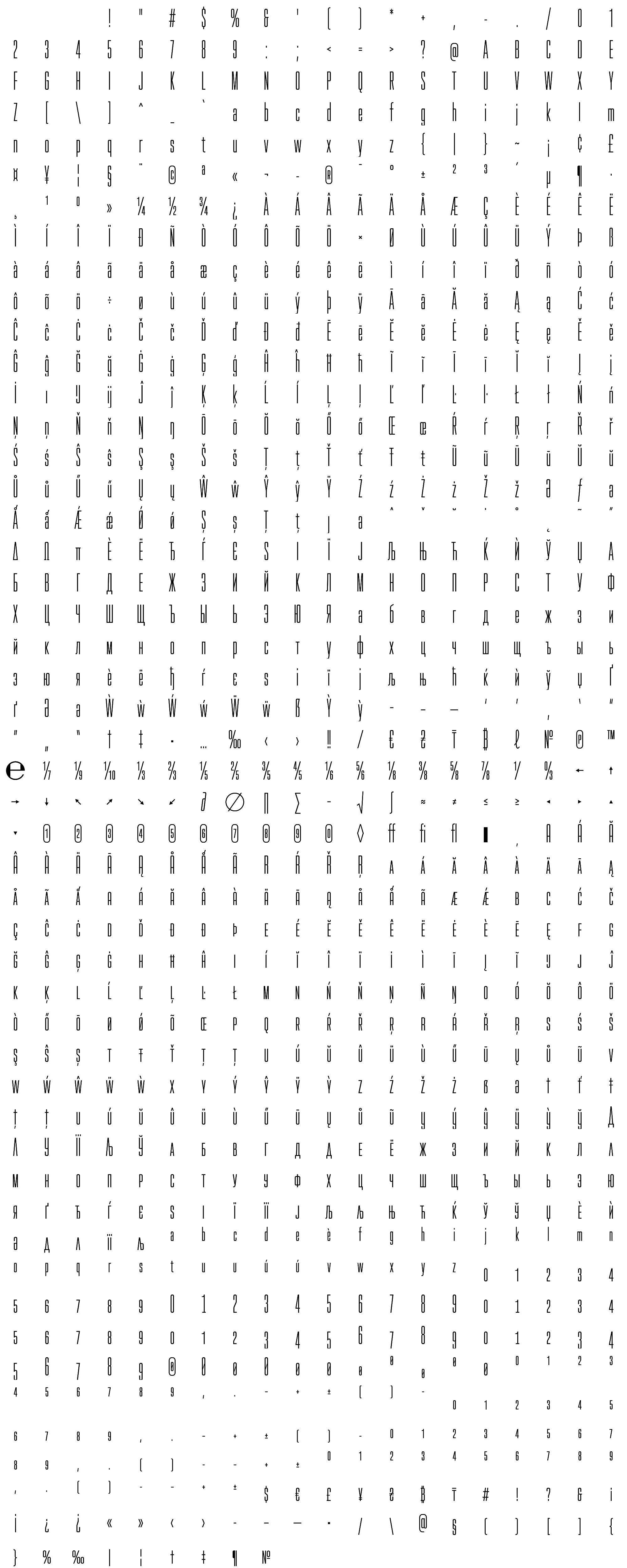 Due to the nature of thumbs' generation process, some of the glyphs in the glyph map may appear cropped.