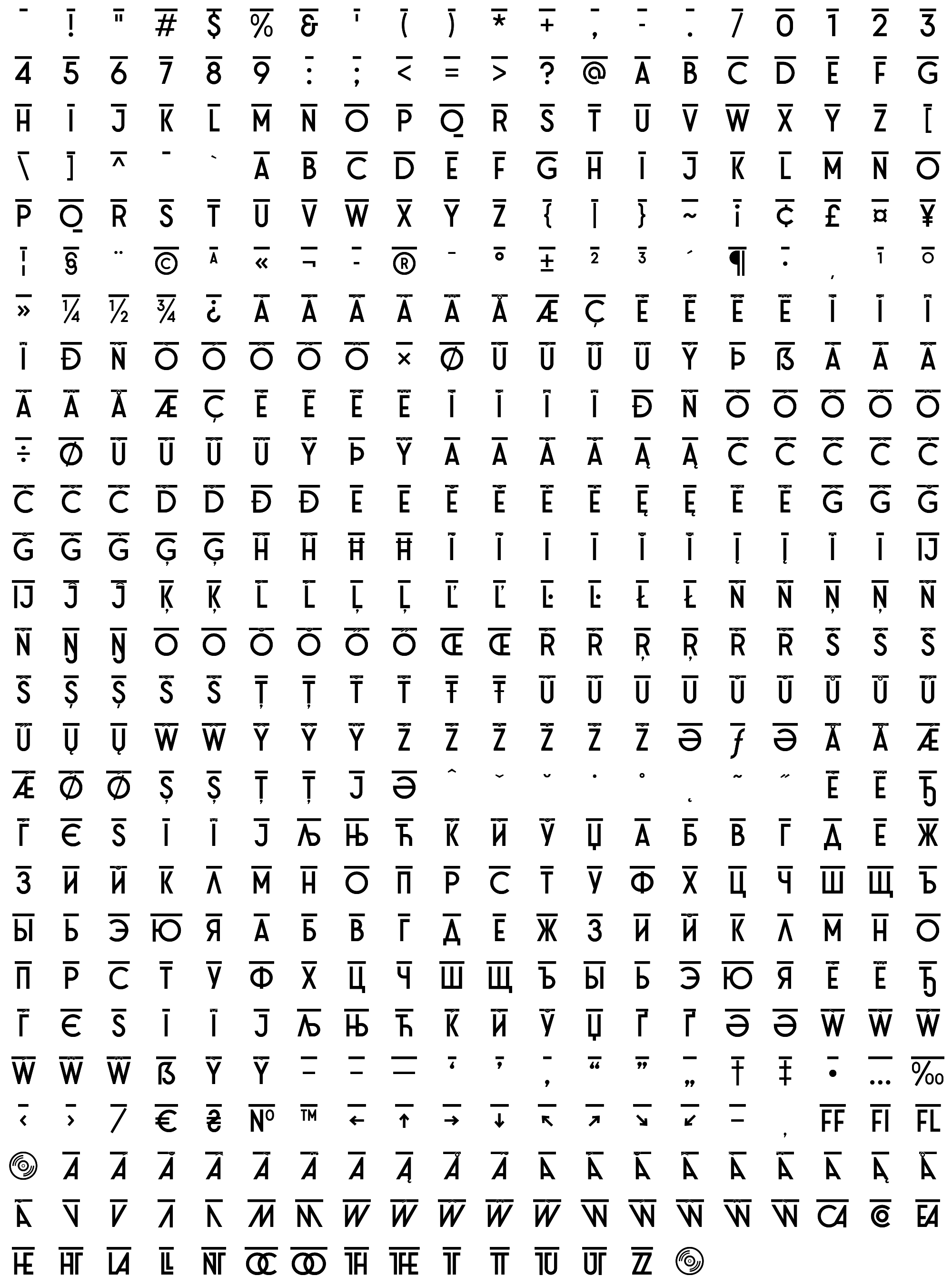 Due to the nature of thumbs' generation process, some of the glyphs in the glyph map may appear cropped.