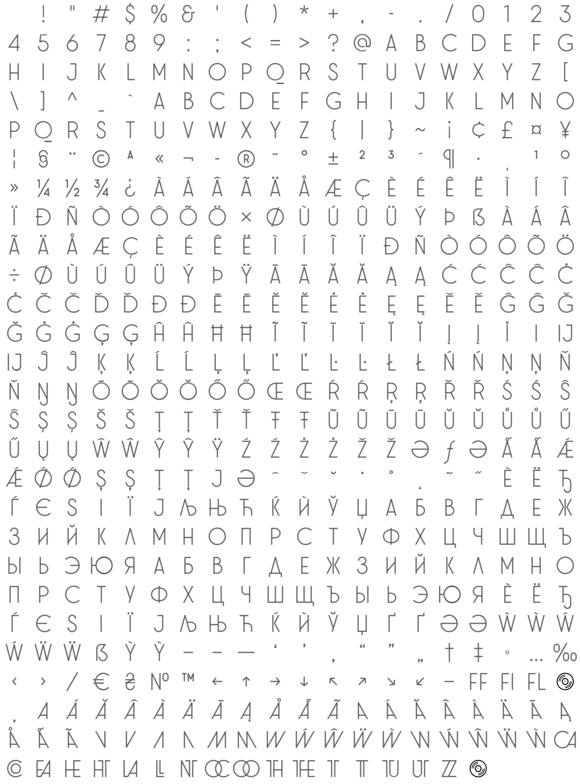 Due to the nature of thumbs' generation process, some of the glyphs in the glyph map may appear cropped.