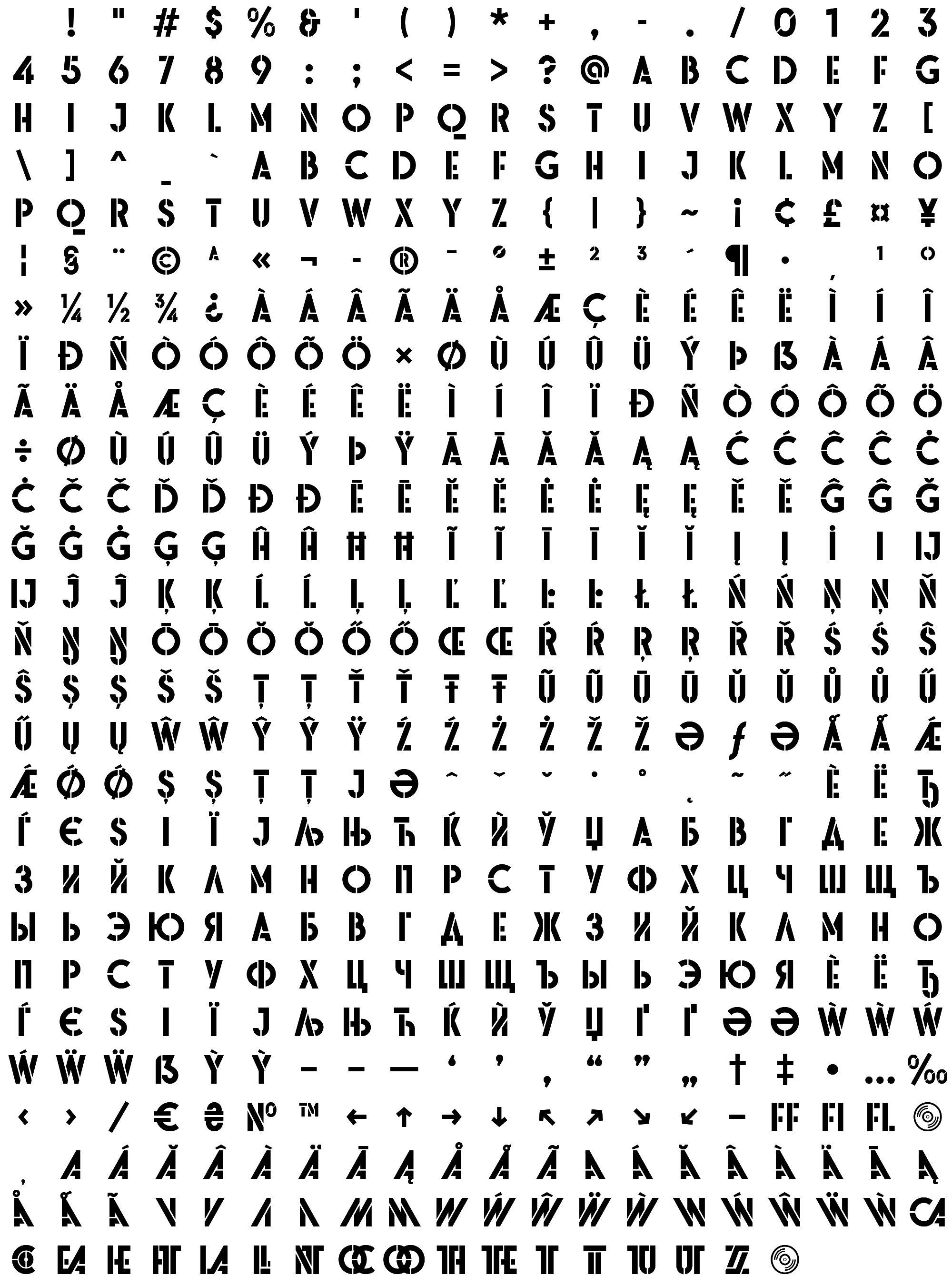 Due to the nature of thumbs' generation process, some of the glyphs in the glyph map may appear cropped.