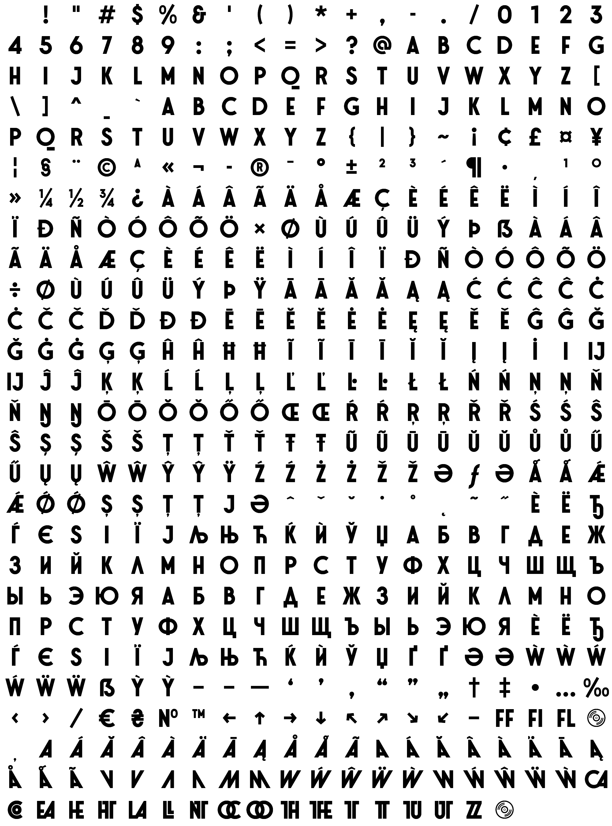 Due to the nature of thumbs' generation process, some of the glyphs in the glyph map may appear cropped.