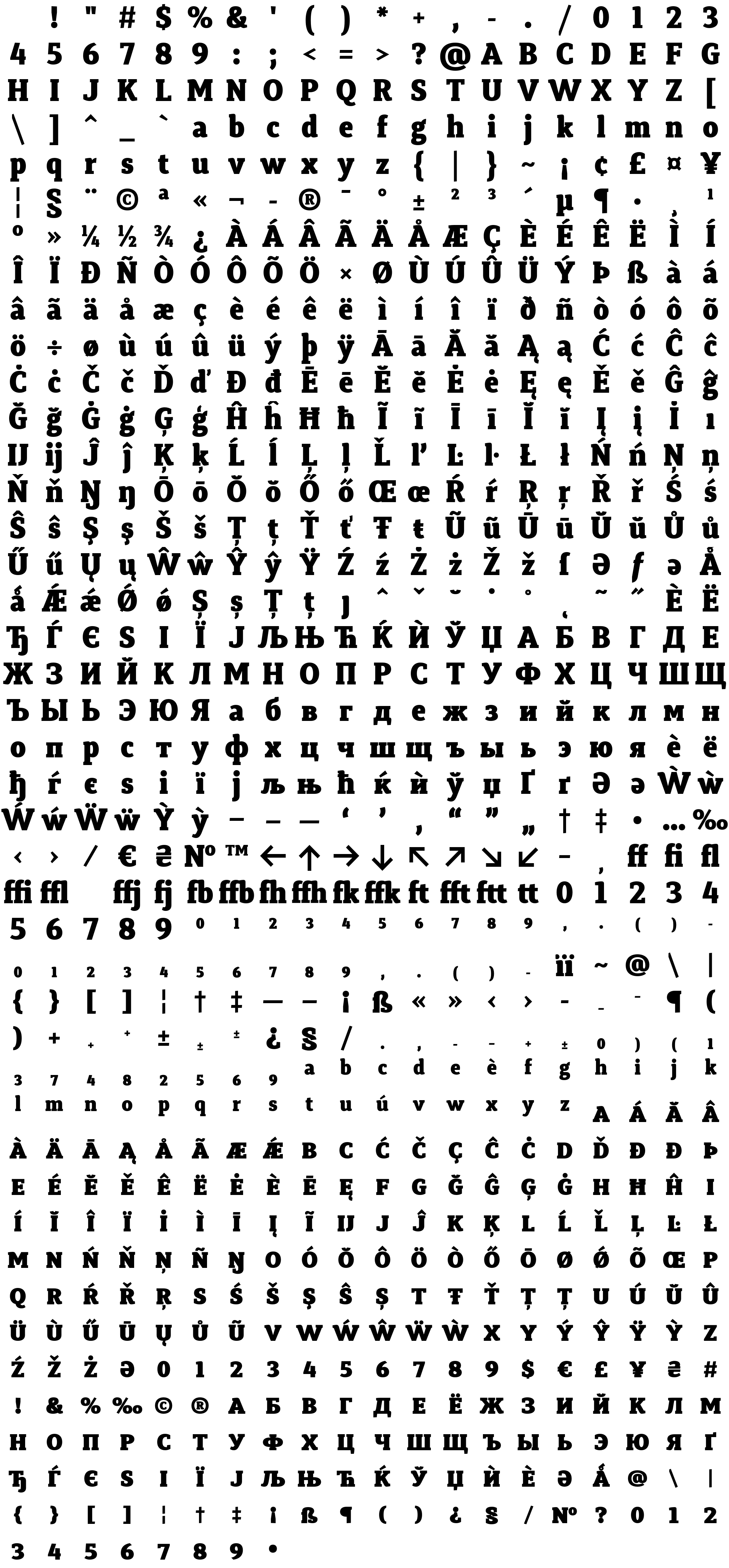 Due to the nature of thumbs' generation process, some of the glyphs in the glyph map may appear cropped.
