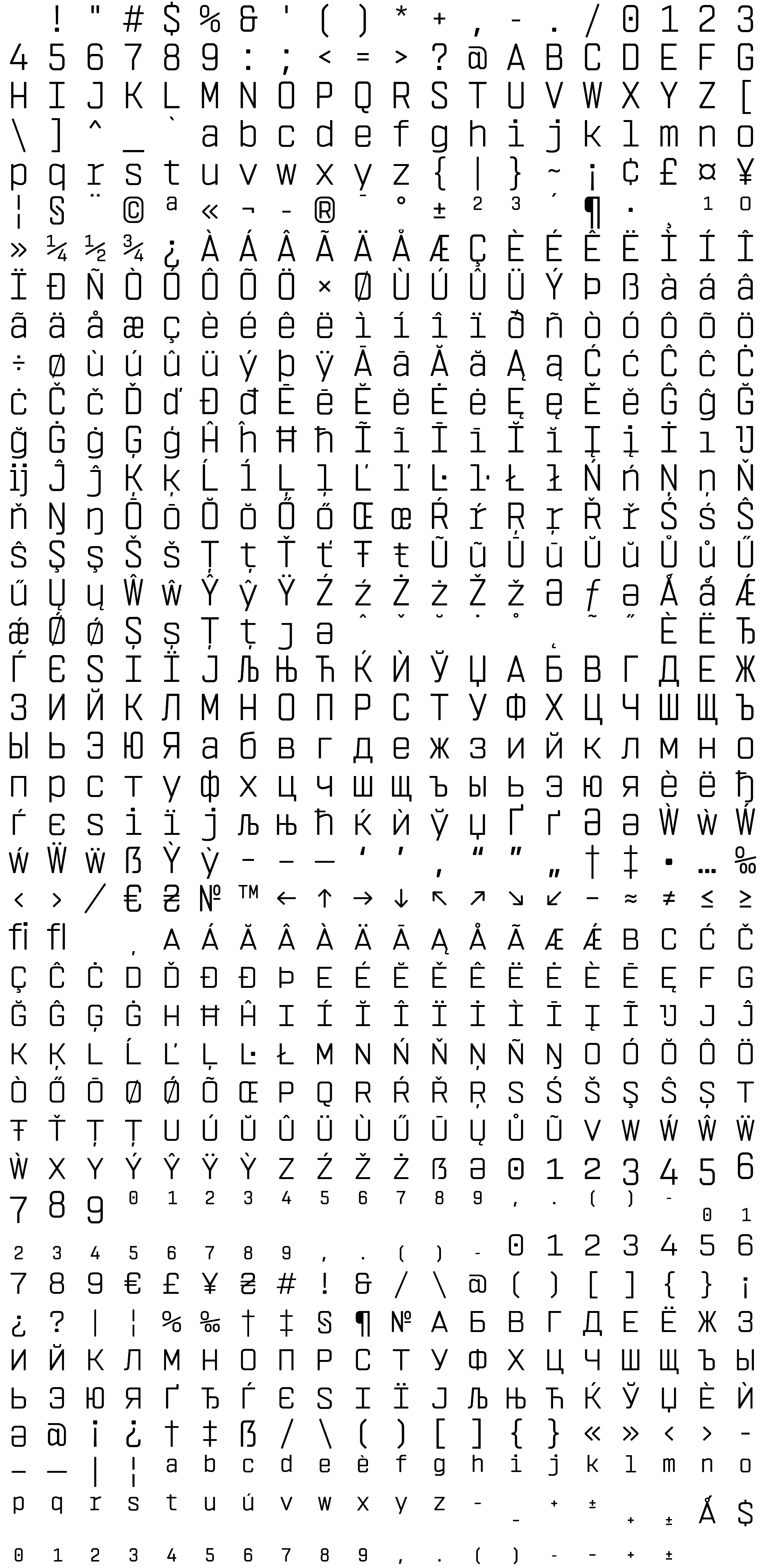 Due to the nature of thumbs' generation process, some of the glyphs in the glyph map may appear cropped.