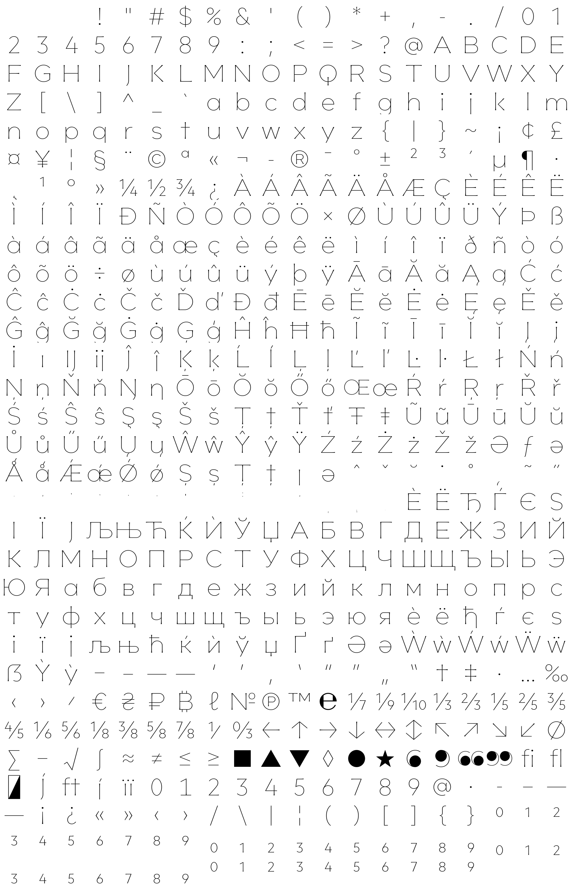 Due to the nature of thumbs' generation process, some of the glyphs in the glyph map may appear cropped.